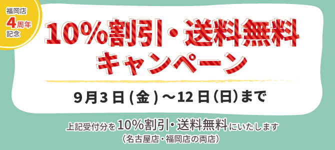 感謝の気持ちとして本日より12日到着分まで福岡店、名古屋本店で10%オフのキャンペーンをさせていただきます。今年も虫あなが多いです。秋物、冬物もこの機会にぜひご利用ください。