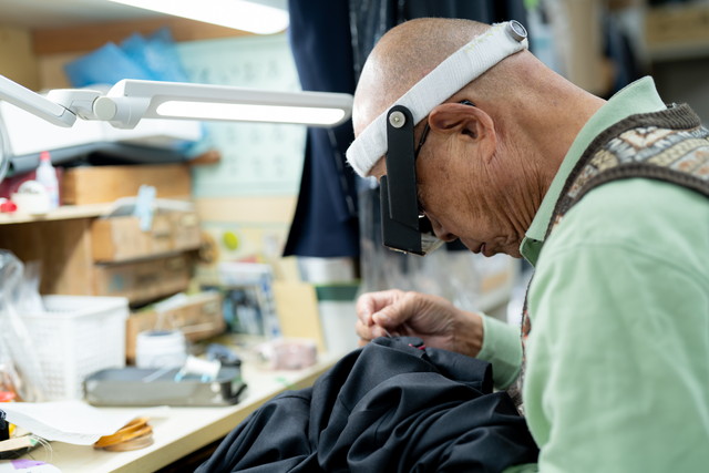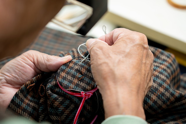 迷うことのなく針を進めていく手元は、まさにその言葉どおりです。あっという間に衣類の穴がふさがっている様は見事な職人技といえるでしょう。